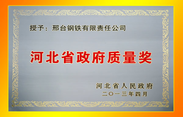 - Xingtai Steel Was Awarded Hebei Government Quality Award 2…