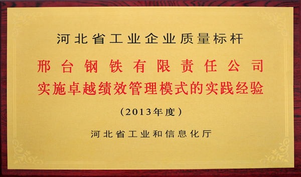 The experience exchanging meeting of the fifth National New Intustrilization Demonstration Base Quality Standard, hosted by the Industry and Information Technology Department of Hebei Province, was held in Shijiazhuang city. The award ceremony was held in the meeting. Xingtai Steel company attended the meeting and was awarded Provincial Industrial Enterprise Quality Standard