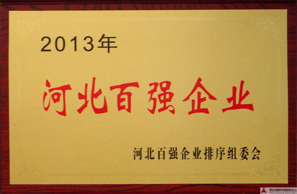 Xingtai Steel was awarded the biggest 100 Enterprise on 2013 of Hebei.