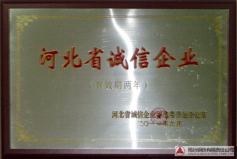 Xingtai Steel was awarded the Credit Enterprise of Hebei Province.