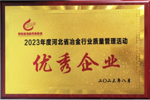 Xingtai Steel was awarded "Outstanding Enterprise of quality management in metallurgical industry of Hebei Province in 2023".