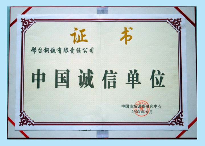 Since 2003 to 2006, Xingtai Steel had won  in succession the certificate of National Products Quality-Inspection-Free.