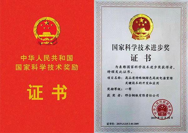 邢鋼“高品質(zhì)特殊鋼綠色高效電渣重熔關(guān)鍵技術(shù)的開發(fā)和應用”榮膺國家科技進步一等獎