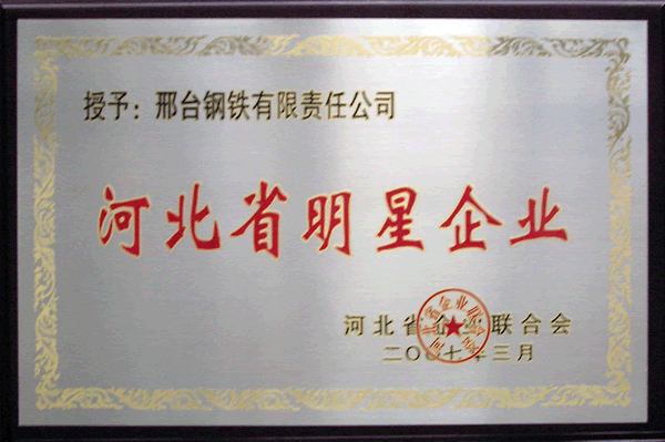2007年3月,邢鋼獲得由河北省企業(yè)聯(lián)合會(huì)頒發(fā)的“河北省明星企業(yè)”榮譽(yù)稱(chēng)號(hào)。
