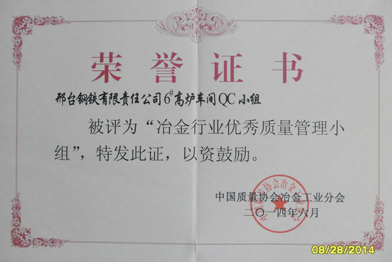 邢鋼質(zhì)量管理小組成果獲獎(jiǎng)再創(chuàng)佳績(jī)