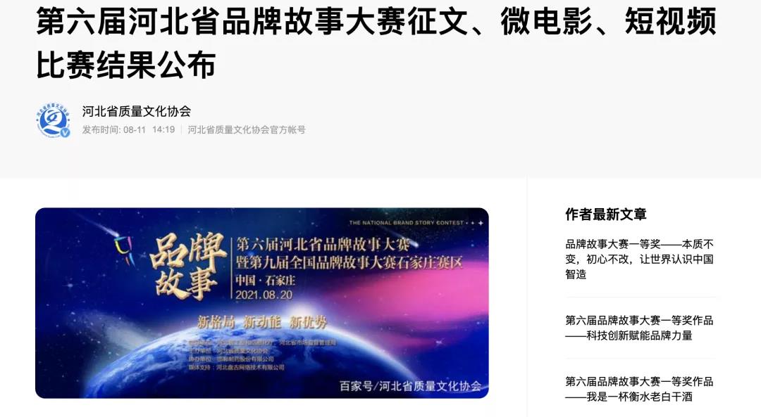 日前,從河北省質(zhì)量文化協(xié)會官網(wǎng)獲悉:邢臺鋼鐵有限責(zé)任公司所報(bào)送的5件參賽作品,在省質(zhì)量文化協(xié)會主辦、邯鄲制藥股份有限公司和河北盤古網(wǎng)絡(luò)技術(shù)有限公司協(xié)辦的第六屆河北省品牌故事大賽暨第九屆全國品牌故事大賽(石家莊賽區(qū))中,均取得令人滿意的成績:其中,《匠心精品,奔跑在強(qiáng)國的大道上》獲大賽征文一等獎(jiǎng),《…