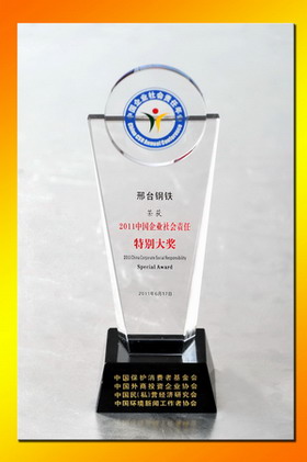 2011年6月17日,由中國外商投資企業(yè)協(xié)會、中國保護(hù)消費(fèi)者基金會、中國民(私)營經(jīng)濟(jì)研究會、中國環(huán)境新聞工作者協(xié)會和北京市石景山區(qū)人民政府聯(lián)合主辦的“第三屆企業(yè)社會責(zé)任年會”在北京舉行。本次年會主題為“企業(yè)的責(zé)任戰(zhàn)略與創(chuàng)新”。年會上隆重揭曉“2011(第三屆)中國企業(yè)社會責(zé)任榜單”。邢鋼公司經(jīng)過嚴(yán)格審核,入選“中國企業(yè)社會責(zé)任榜100強(qiáng)”,并獲“2011中國企業(yè)社會責(zé)任特別大獎”,授予邢鋼董事長袁世臻 “中國履行社會責(zé)任優(yōu)秀企業(yè)家”稱號。