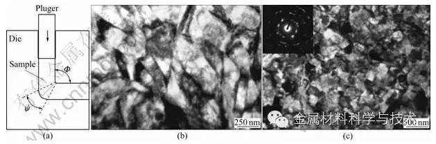 在金屬的成形過程中將超大塑性應(yīng)變應(yīng)用于一定體積的金屬中以獲得超細(xì)晶材料的過程,其本質(zhì)是細(xì)晶強(qiáng)化。通過大的塑性變形使材料的位錯密度增加,形成位錯壁,將位錯壁轉(zhuǎn)化為大角度晶界,從而獲得超細(xì)晶組織以及控制形成不同的織構(gòu)。該技術(shù)已經(jīng)在制備各種超細(xì)晶材料領(lǐng)域獲得了廣泛的應(yīng)用。