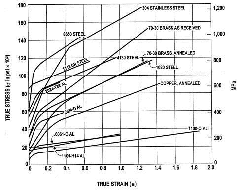 多種真實(shí)金屬材料的真應(yīng)力真應(yīng)變曲線(xiàn)