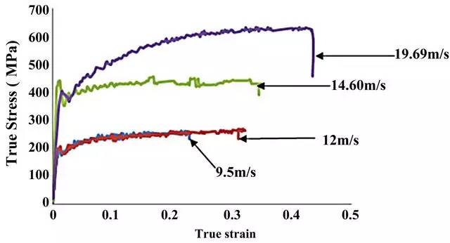 最后,談一下應(yīng)變速率。通常測(cè)試的金屬材料的拉伸曲線(xiàn)都是在較低的應(yīng)變速率下測(cè)得。只有一些特殊金屬構(gòu)件才需要在較高應(yīng)變速率下測(cè)試其力學(xué)性能,即發(fā)生高速形變的構(gòu)件。正常室溫條件下應(yīng)變速率拉伸,材料的變形主要以位錯(cuò)的滑移或?qū)\生為主。