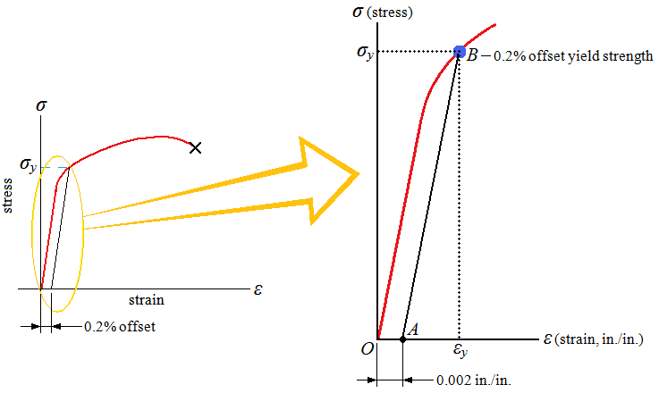 常用的金屬一般為多晶體金屬,因此工程實(shí)際金屬起始塑性變形具有非同時(shí)性特征。在拉伸曲線(xiàn)上具體反映就是沒(méi)有明顯的屈服點(diǎn)。那么,如何界定工程實(shí)際金屬發(fā)生了塑性變形呢?殘留塑性變形量就成為重要的依據(jù),人們通常人為地把一定殘留塑性變形量時(shí)工程金屬對(duì)應(yīng)的抗力作為屈服強(qiáng)度,也稱(chēng)為條件屈服強(qiáng)度。這很好理解,沒(méi)有明顯的塑性屈服點(diǎn),就沒(méi)有明顯的屈服強(qiáng)度,要想知道實(shí)際金屬的屈服強(qiáng)度就需要一個(gè)判定條件,因此就有了條件屈服強(qiáng)度。對(duì)于不同的金屬構(gòu)件,其條件屈服強(qiáng)度對(duì)應(yīng)的殘留變形量不同。對(duì)于一些苛刻的金屬構(gòu)件,其殘留變形量規(guī)定應(yīng)較小,而普通金屬構(gòu)件條件屈服時(shí)對(duì)應(yīng)的殘留變形量則較大。常用的殘留變形量為0.01%,0.05%, 0.1%,0.2%,0.5%和1.0%等。