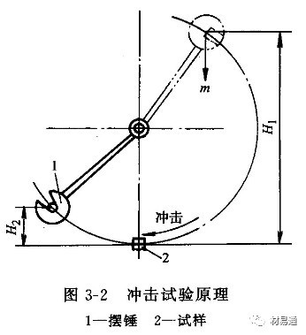 釋放擺錘沖斷試樣,擺錘的剩余能量為mgH2,則擺錘沖斷試樣失去的位能為mgH1-mgH2,這就是試樣變形和斷裂所消耗的功,稱(chēng)為沖擊吸收功,以AK表示,單位為J。