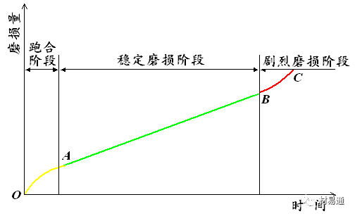 劇烈磨損階段:隨磨損的增長,磨耗增加,表面間隙增大,表面質(zhì)量惡化,機(jī)件快速失效。