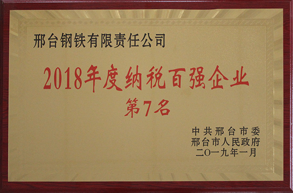 邢鋼入圍邢臺市 2018年度納稅百強企業(yè)榜