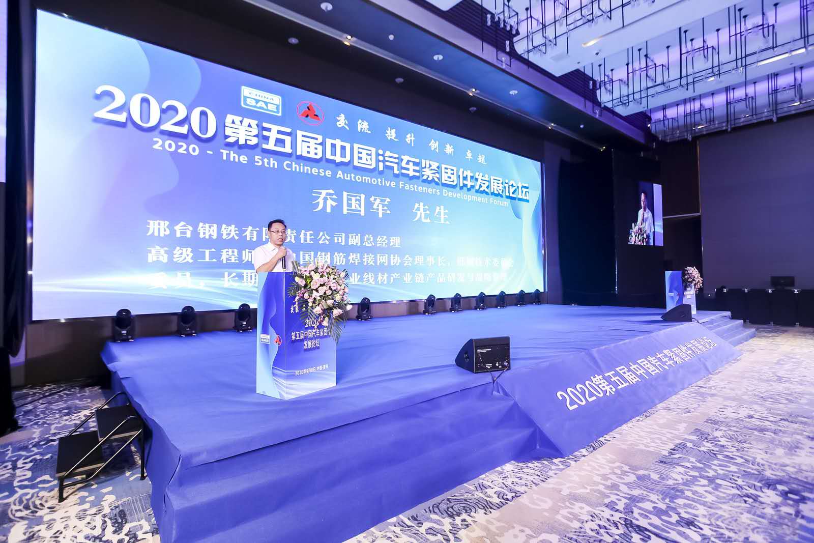 2020年9月8日,由中國(guó)汽車工程學(xué)會(huì)、中國(guó)汽車工程學(xué)會(huì)汽車防腐蝕老化分會(huì)主辦的2020第五屆中國(guó)汽車緊固件發(fā)展論壇在嘉興召開。汽車主機(jī)廠、零部件整機(jī)廠、緊固件企業(yè)、檢測(cè)機(jī)構(gòu)、科研院所、大專院校等180多家緊固件相關(guān)單位的科研人員、技術(shù)人員及管理人員400多人出席大會(huì)。本次大會(huì)由邢臺(tái)鋼鐵有限責(zé)任公司承辦,公司副總經(jīng)理喬國(guó)軍、總經(jīng)理助理兼銷售公司總經(jīng)理劉振民等參加了大會(huì)。