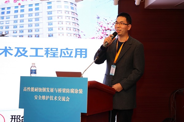 在技術(shù)交流環(huán)節(jié),本次會議共安排了15場次的專家報告。包括中國鋼研科技集團有限公司、邢臺鋼鐵有限責任公司、首鋼集團有限公司、馬鞍山鋼鐵股份有限公司、中交一公路勘察設(shè)計研究院有限公司、蘇交科集團股份有限公司、上海市城市建設(shè)設(shè)計研究院總院、武漢重型工程股份有限公司、山東電工電氣有限公司、中鐵寶橋集團有限公司、中鐵山橋集團有限公司、固瑞克流體設(shè)備(上海)有限公司、武漢雙虎涂料有限公司、河南青山環(huán)??萍加邢薰?、廣州集泰化工股份有限公司等技術(shù)專家在會上做了精彩的技術(shù)分享。報告內(nèi)容題材涉及廣泛、內(nèi)容充實,既有正向設(shè)計、行業(yè)應(yīng)用、案例分析,又有新技術(shù)、行業(yè)標準、相關(guān)政策深度解讀。學術(shù)分享、學習交流氛圍濃厚,與會代表反響熱烈。其中,邢鋼首席技術(shù)專家 技術(shù)中心線材應(yīng)用研究所所長阮士朋作了《高強韌耐候螺栓用鋼關(guān)鍵技術(shù)及工程應(yīng)用》精彩主題演講,引起了與會專家、學者的普遍關(guān)注。
