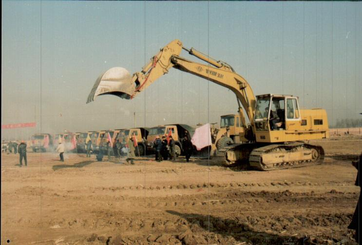 圖為1995年破土動(dòng)工建設(shè)的場景,鞭炮的硝煙尚未消散,挖掘機(jī)抬起挖斗正要挖下第一鏟,運(yùn)輸車整裝待發(fā),“煉鋼”來了!