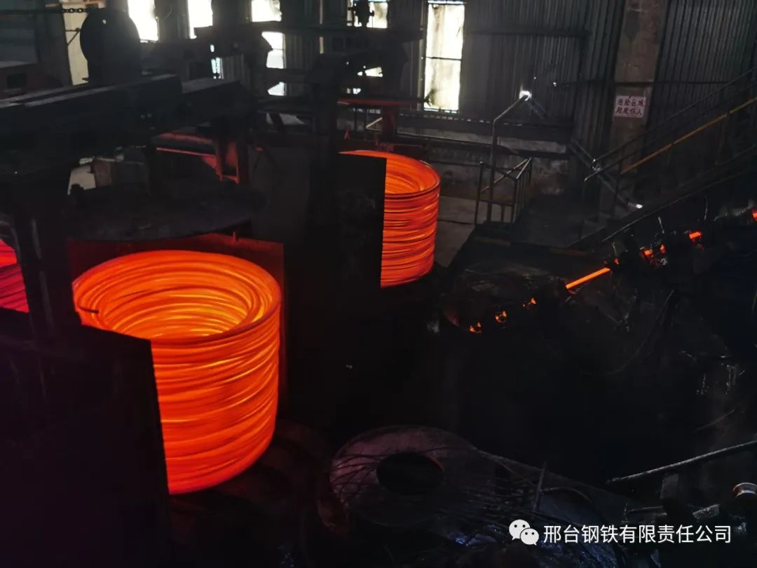 1月25日6時(shí)28分,隨著三線車(chē)間主控臺(tái)下達(dá)“出鋼”指令,加熱爐爐門(mén)緩緩開(kāi)啟,火紅的鋼坯順勢(shì)咬入軋機(jī),氣勢(shì)如虹地穿越過(guò)粗、中、精軋機(jī)組,滿(mǎn)載邢鋼人濃濃期待的盤(pán)條,頃刻間從吐絲機(jī)上旋落,短短不到兩分鐘,整個(gè)過(guò)程行云流水、一氣呵成。至此,邢鋼復(fù)產(chǎn)后首卷高端線材正式軋制完畢,元?dú)鉂M(mǎn)滿(mǎn)、砥礪奮進(jìn)中的邢鋼已步入生產(chǎn)運(yùn)營(yíng)新階段。