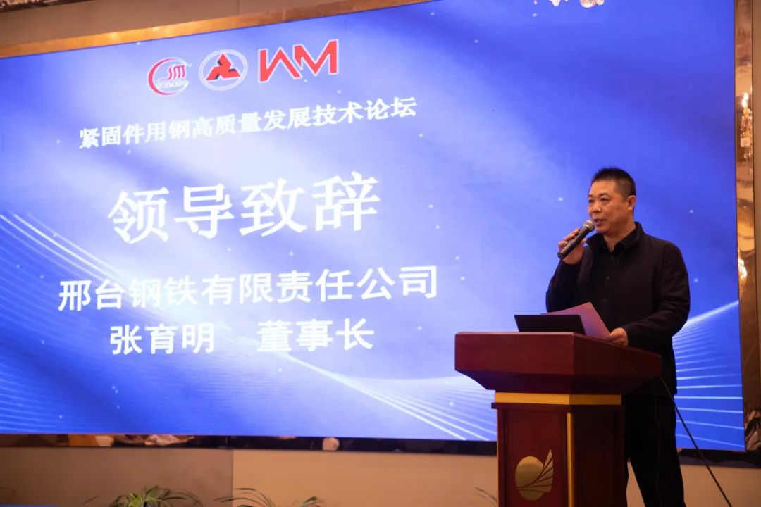 邢鋼公司黨委書記、董事長張育明致辭,他表示,此次論壇是共商緊固件用鋼高質(zhì)量發(fā)展,緊固件產(chǎn)業(yè)鏈上下游企業(yè)締結友誼、協(xié)商合作、謀劃共贏的盛會。邢鋼能夠為本次論壇提供支持,倍感榮幸。