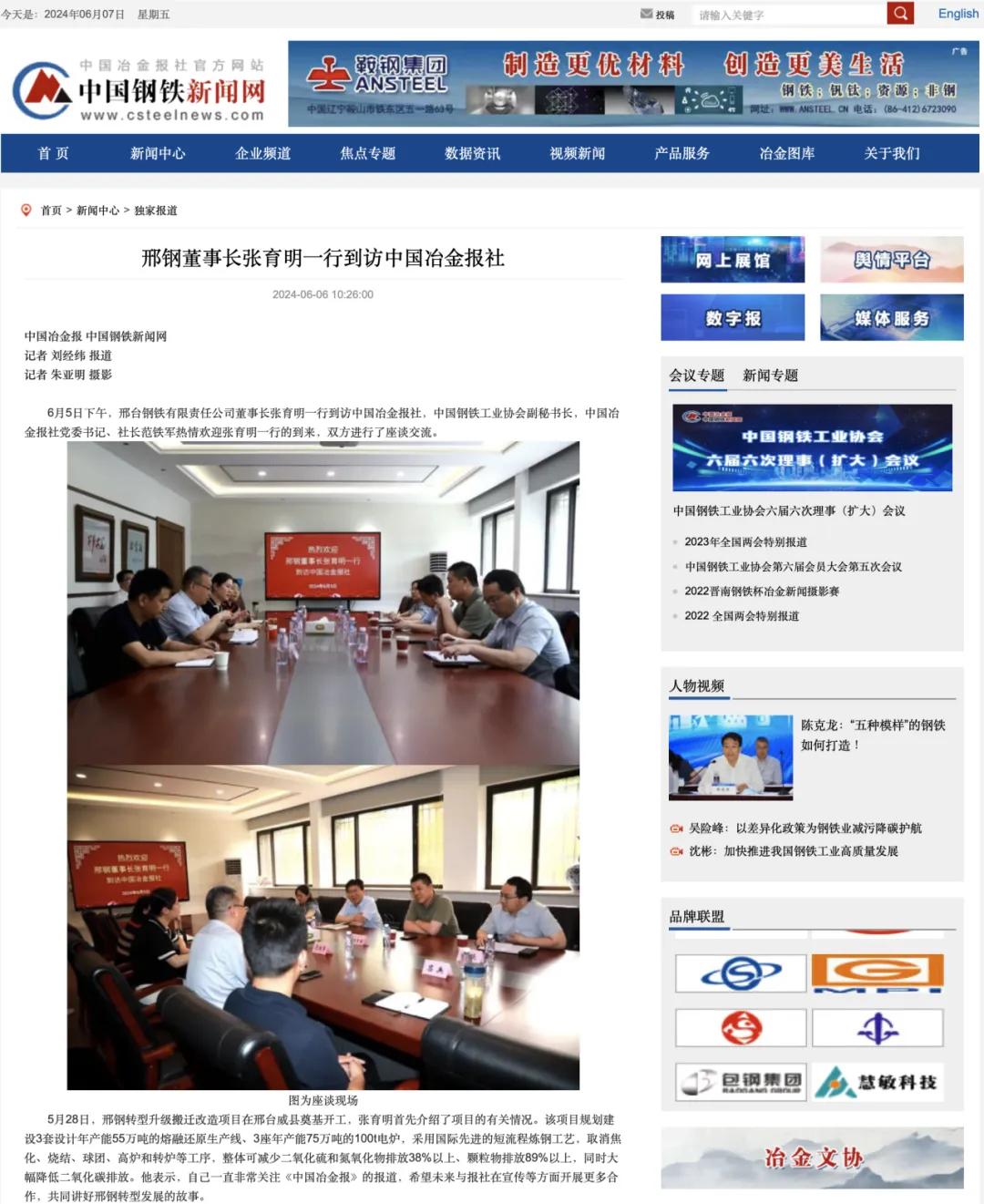 邢鋼董事長(zhǎng)張育明一行到訪中國(guó)冶金報(bào)社