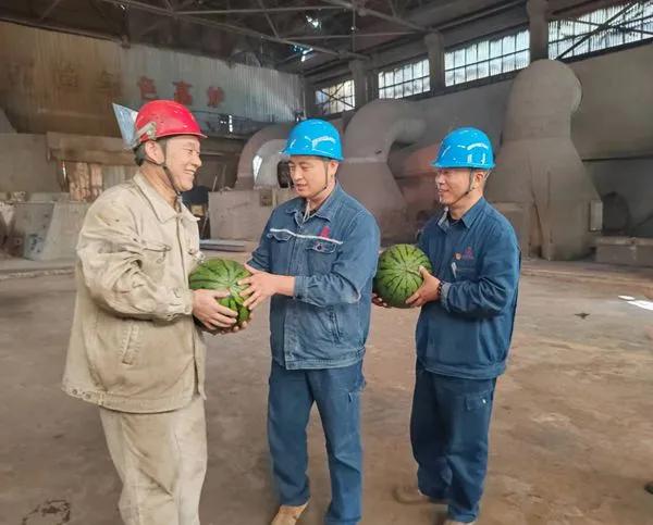 為認(rèn)真落實(shí)好夏季安全生產(chǎn)和做好員工防暑降溫工作,從解決職工日常工作中存在的實(shí)際需求出發(fā),此次廠領(lǐng)導(dǎo)帶著飲料、西瓜等消暑食品,親自送到生產(chǎn)線高溫崗位員工手中,同時(shí),叮囑員工要遵章守紀(jì),克服因天氣炎熱產(chǎn)生麻痹思想和僥幸心理,做到防患于未然,在高溫高熱的工作環(huán)境下保重身體、注意安全。
