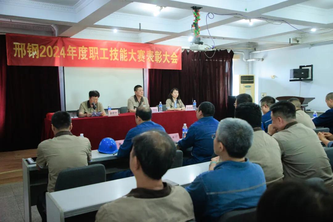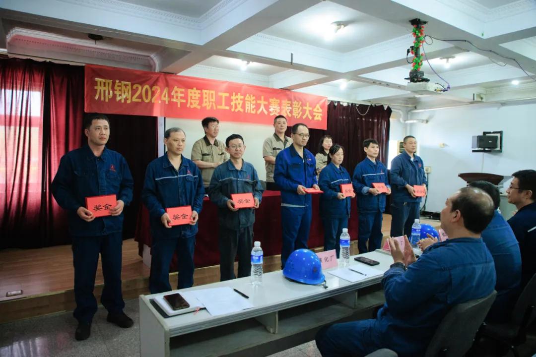 2024年7月16日,公司工會(huì)、人力資源部聯(lián)合舉辦的邢鋼2024年度職工技能大賽頒獎(jiǎng)儀式在煉鋼廠舉行。公司黨委書(shū)記、董事長(zhǎng)張育明,公司總工程師兼董事長(zhǎng)、總經(jīng)理助理田新中,公司董事長(zhǎng)助理兼人力資源總監(jiān)徐會(huì)云為獲獎(jiǎng)單位和個(gè)人頒獎(jiǎng)。