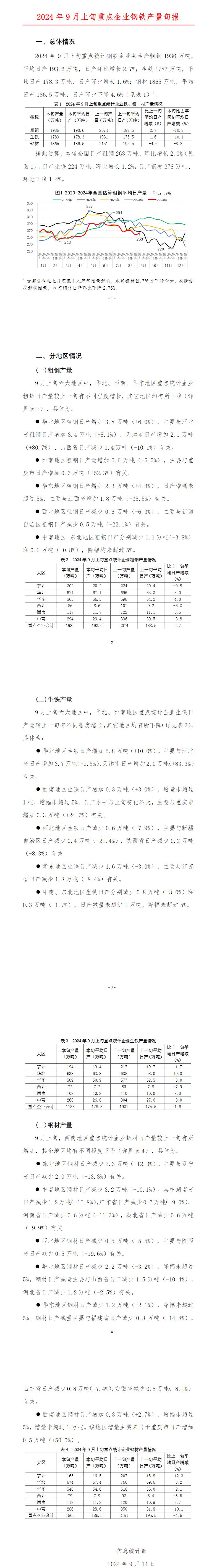 中鋼協(xié):9月上旬粗鋼平均日產(chǎn)193.6萬噸,環(huán)比增長2.7%