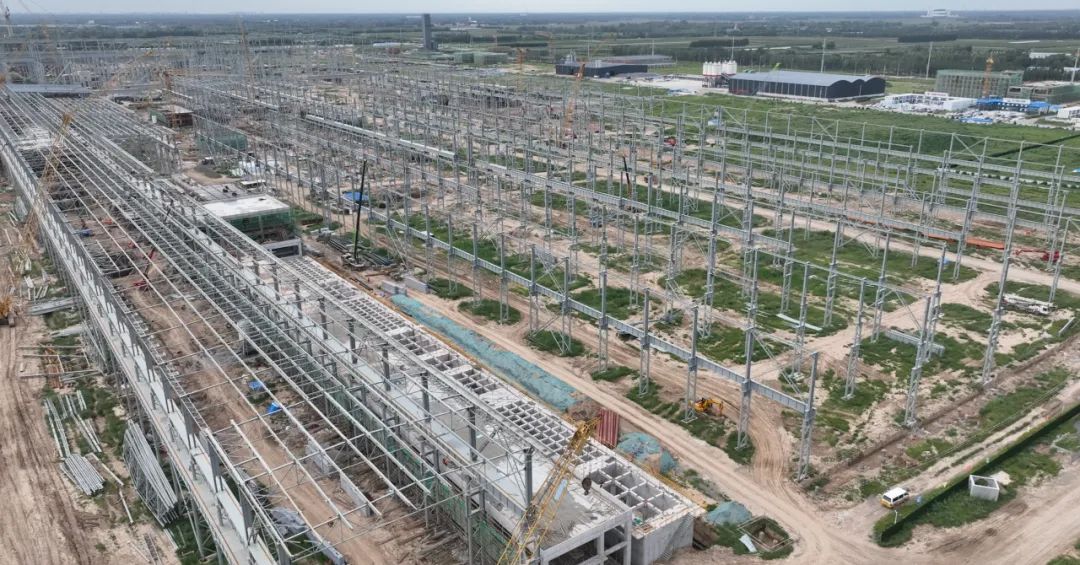 工程車來回穿梭的車轍印、大型機械的轟鳴聲、矗立的鋼結構和封頂?shù)慕ㄖ黧w、塔吊揮舞著長臂加緊為建設者運送物資……日前,位于威縣高新區(qū)的邢臺鋼鐵有限責任公司搬遷升級項目(以下簡稱“邢鋼搬遷升級項目”)正在有序緊張施工中,2000余名工人分布在各個作業(yè)面,項目已全面進入地上鋼結構及主線設備基礎施工階段,項目一期預計今年年底建成投產(chǎn)。
