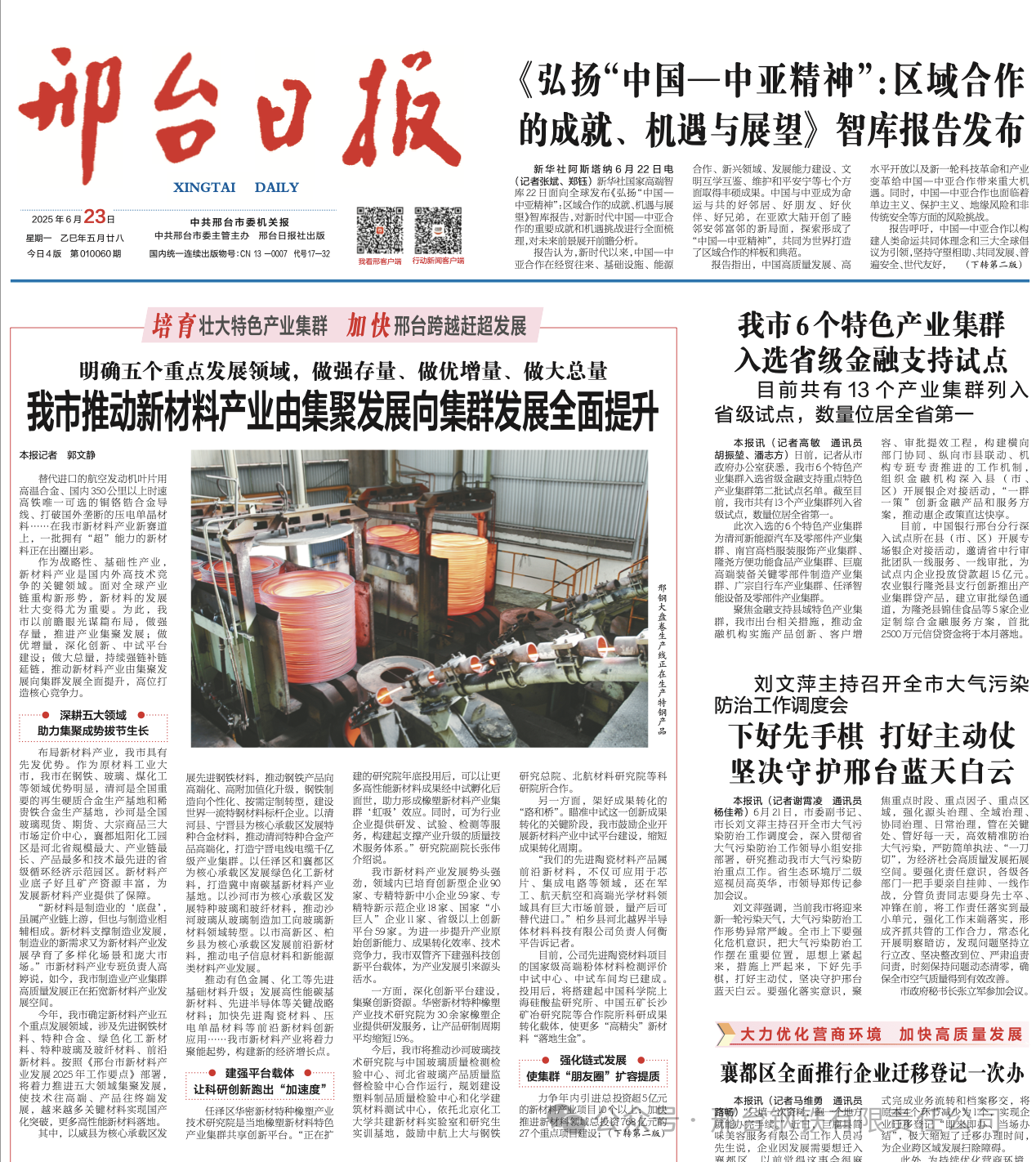 今年,我市確定新材料產(chǎn)業(yè)五個(gè)重點(diǎn)發(fā)展領(lǐng)域,涉及先進(jìn)鋼鐵材料、特種合金、綠色化工新材料、特種玻璃及玻纖材料、前沿新材料。按照《邢臺市新材料產(chǎn)業(yè)發(fā)展2025年工作要點(diǎn)》部署,將著力推進(jìn)五大領(lǐng)域集聚發(fā)展,使技術(shù)往高端、產(chǎn)品往終端發(fā)展,越來越多關(guān)鍵材料實(shí)現(xiàn)國產(chǎn)化突破,更多高性能新材料落地。
